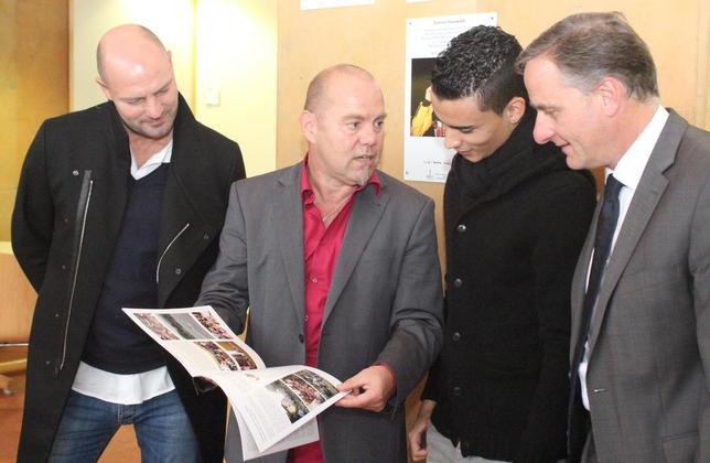TUTTLINGEN – Pascal Wehrlein, Mercedes-Pilot bei der Deutschen Tourenwagen-Masters und Achter in der diesjährigen Rennserie, wird künftig für die Tuttlinger Jugendhilfe-Einrichtung Mutpol als Botschafter unterwegs sein und benachteiligte Jugendliche ermutigen. Am Montag informierte sich der aus Neuhausen-Worndorf stammende Rennfahrer vor Ort. "Mutpol-Botschafter berichten bei eigenen Veranstaltungen über unsere Arbeit, sind Vorbilder für die Jugendlichen in unseren Einrichtungen und sammeln auch noch Geld", beschrieb Dieter Meyer, Gesamtleiter bei Mutpol, die Aufgaben der Botschafter. Bisher sind die Biathletin Simone Hauswald, der Ringer Marc Buschle, die Rhönrad-Sportlerin Kathrin Schad und der Behinderten-Sportler Marcus Sieger Mutpol-Botschafter. Meyer: "Durch ihren persönlichen Einsatz und ihr Engagement tragen sie dazu bei, dass die professionelle Arbeit, die wir mit den uns anvertrauten Kindern, Jugendlichen und deren Familien leisten, immer wieder in den Fokus des öffentlichen Interesses gelangt." Wehrlein will sich für "Kinder und Jugendliche einsetzen, die es in ihrem Leben nicht so einfach haben", wie er sagte. Er will die Kinder ermutigen und aufmuntern, "dass sie, nachdem sie mich kennengelernt haben, noch intensiver an ihre Ziele herangehen, damit sie ihre Ziele auch verwirklichen können." Unser Bild zeigt Wehrleins Manager Dietmar Kohli, Mutpol-Gesamtleiter Dieter Meyer, Pascal Wehrlein und Jochen Zeyher, 2. Vorsitzender des Verwaltungsrates (von links).