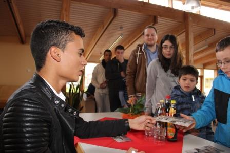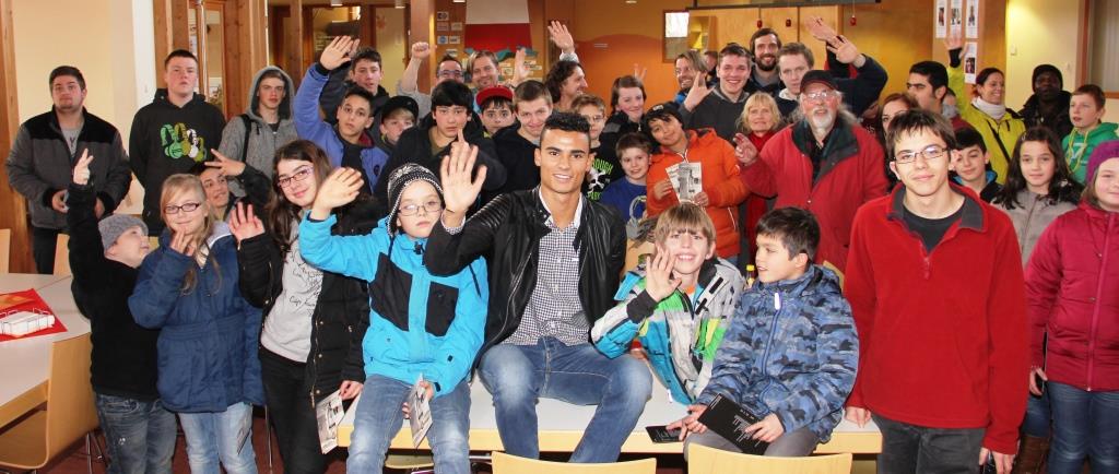 TUTTLINGEN – Pascal Wehrlein, der jüngste Gewinner eines DTM-Rennens und Ersatzfahrer des Formel 1-Teams von Mercedes, hat am Montag die diakonische Jugendhilfe-Einrichtung Mutpol in Tuttlingen besucht, die Kinder, Jugendliche und Familien in schwierigen Lebenssituationen unterstützt. Der 20-jährige Worndorfer ist seit 2014 offizieller Botschafter für Mutpol. Nach einem kleinen Rundgang durch die Einrichtung schrieb der Rennfahrer im Mutpol-Kommunikationszentrum noch geduldig Autogramme für die zahlreich erschienenen Fans, ließ sich mit diesen ablichten (Foto) und beantwortete die eine oder andere Frage nach seinem Erfolgsgeheimnis. (sz) Foto: schmid
