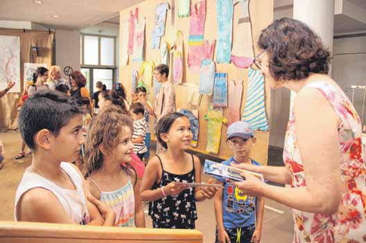 TUTTLINGEN – Im Rathaus ist noch bis Freitag, 3. 8., die Ausstellung „Cool Arts“ zu sehen – ein gemeinsames Projekt des Rotary Clubs Hohenkarpfen-Tuttlingen und der Jugendkunstschule Zebra. Dabei besuchen Kinder und Jugendliche die Städtische Galerie und lassen sich von den Kunstobjekten inspirieren. Dann machen sie sich ans Werk und schaffen ihre eigene Kunst. Finanziert wird alles vom Rotary Club Hohenkarpfen-Tuttlingen. Die 111 Kinder und Jugendliche kamen von Mutpol, der Wilhelm-, der Johann-Peter-Hebel-, der Karl-, Albert-Schweitzer- und Schrotenschule. Bild: Susanne Ritzi-Mathé, Präsidentin des Rotary Clubs, übergibt als Geschenk ein Pinselset an die jungen Künstler. Foto: Rotary Club