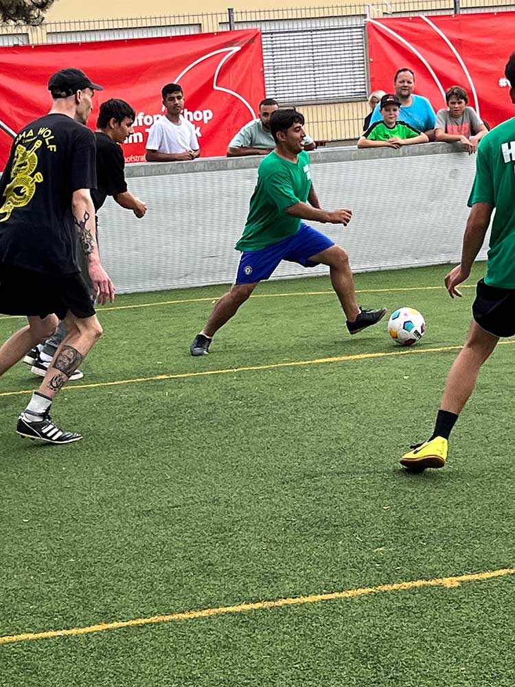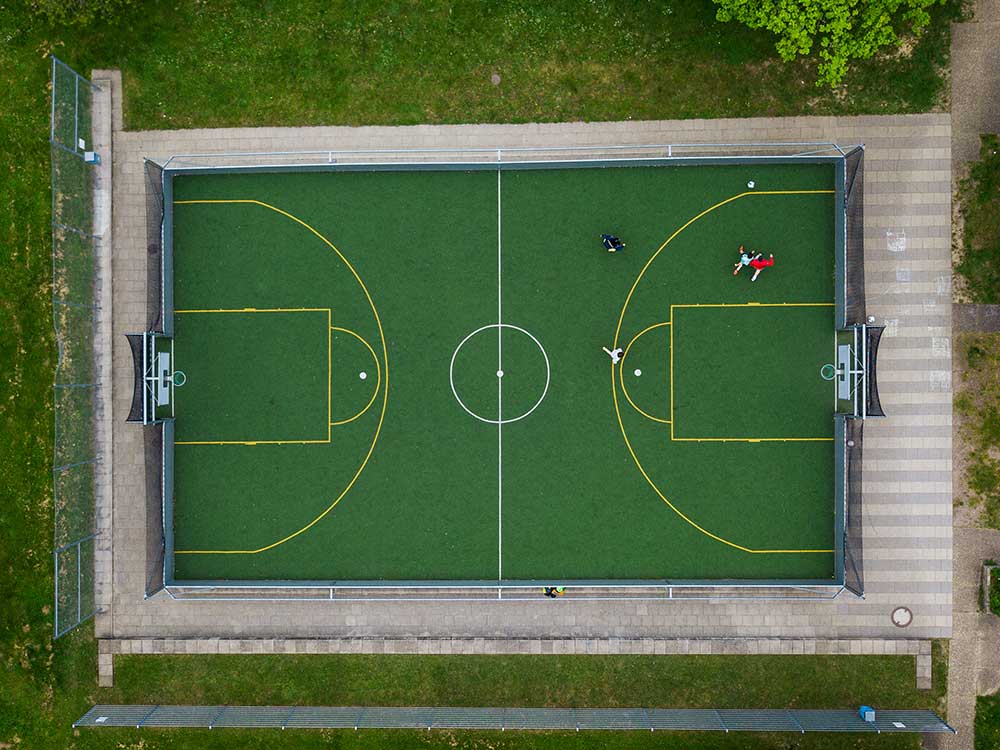 Seit vielen Jahren ist aus unserem Sportplatz ein Kunstrasenplatzt geworden, der größte Beliebtheit erfährt. Der Sportplatz wird in Pausenzeiten der Schule und vor allem im Freizeitbereich regelmäßig genutzt, manchmal sind auch Jugendliche aus dem Stadtteil dabei.